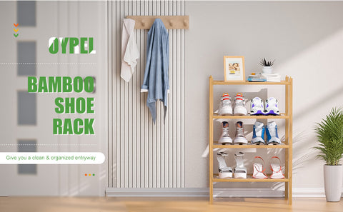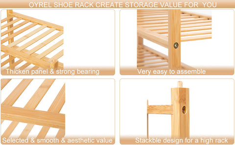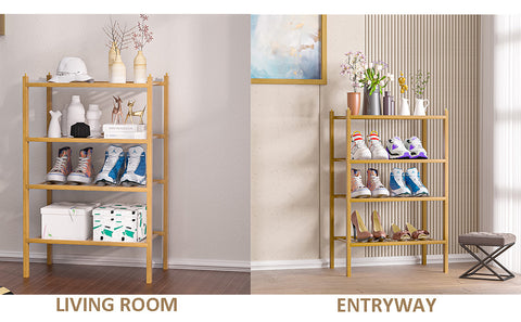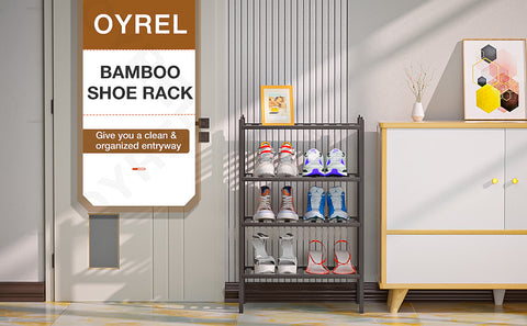 - [ Steady & long-lasting shoes shelf ] - The 4 tier shoe rack is made from natural fast-growing matured bamboo for durability and strength, with an additional allen key, make sure the skinny shoe rack stackable easier to be set up and stabler. Slatted design contributes air circulation and prevent any odor. Say goodbye to the flimsy and cheap shoe stand closet shoe rack wooden.