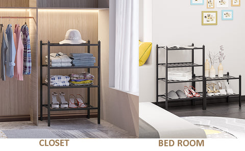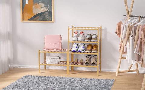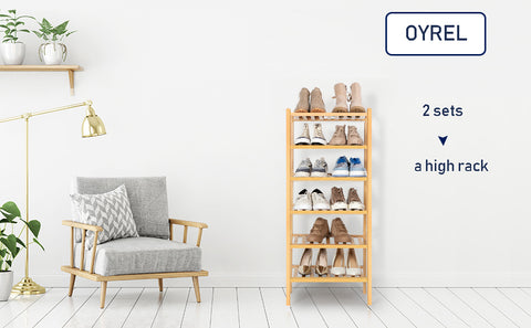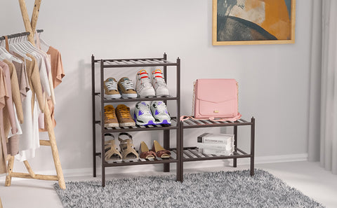 - [ Easy to assemble wooden shoe rack ] - Assemble a stackable shoe rack 4-tier or split into two shoes stand (2 tier small shoe rack for entryway narrow and 2 tier shoes holder bedroom). Please refer to the manual instruction in package..