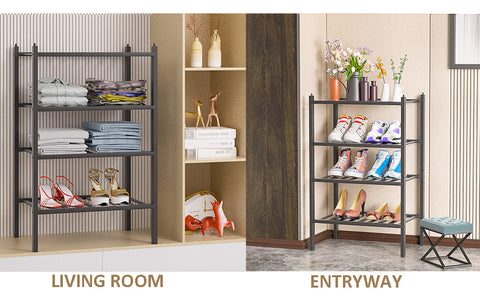 - [ Multi-functional adjustable shoe rack narrow ] - The tall shoe rack free standing is not only for shoes, but also can storage the books, photo frames, DVDs, vases, bags, toys, plants, and toiletries, towels, etc. The small shoe racks shoe storage rack makes the limit space meet your needs..