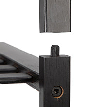 Lovely and anti-rust metal screws and alley key and detailed instruction attached. Just spin the allen key to make the screw into the holes. Very easy.