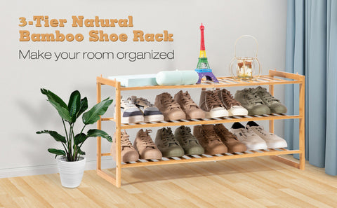 Shoe Rack 3 Tier, Natural Bamboo Stackable Shoe Shelf Shoe Storage Organizer Wooden Shoe Rack for Entryway, Hallway, and Closet Shoe Stand