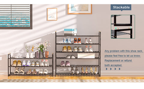 - 👞STACKABLE SHOE RACK: The perfect tenon joint allows stacked two 3 tier shoe rack storage organizer shoe holder for back of door shoe shelves for wall to a 6 tier large shoe rack tall free standing shoe racks for bedroom closet to meet the growing shoes collection.