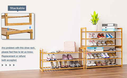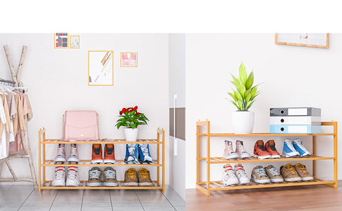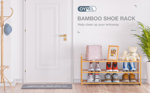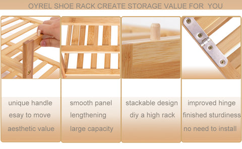 - 👞QUALITY NATURAL BAMBOO: Crafted of the fast-growing natural eco-friendly bamboo for resisting environmental impact.The smooth sturdy shoe rack for garage shoe stand / durable sturdy wood shoe rack for door service for your warm life.