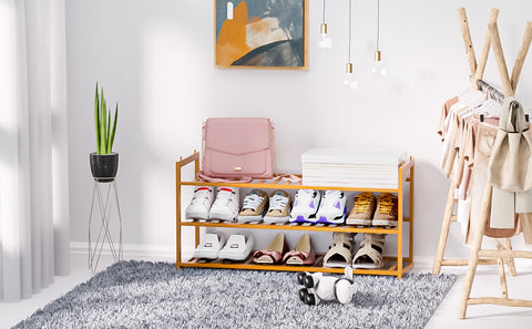 - 👞LARGE CAPACITY: Shoe shelf for closet holds approximately 4 pairs of adult shoes every layer. You can put boots and bags and little plants on the top, the another two level for high heels, sports shoes, slippers,towels, etc. Closet shoe storage closet makes everything display in sight, exactly catch anything needed. Also as a garage shoe rack closet shoe organizer cubby.